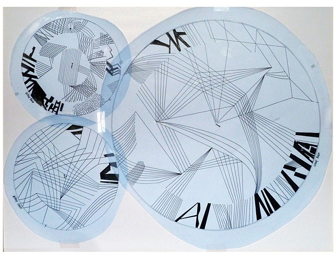 Schwarze Tusche auf transparenter Klarzell-Zeichenfolie - ø 24 cm, 25 cm und 60 cm